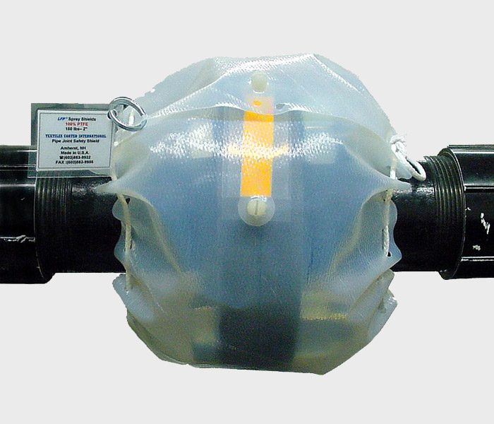 Unlike our award-winning CrossFilm™, many spray shield materials, including PTFE-coated fiberglass, can be weakened by challenging industrial environments and often require monitoring. With a TCI CrossFilm™ spray shield, the body and drawstrings are all made of 100% PTFE. Because PTFE is unaffected by even the most corrosive chemical environments, CrossFilm™ spray shields ensure worker safety will not be jeopardized by degraded materials in the event of a spray-out at a flange. The curl over design of TCI spray shields also inhibits side spray-out.
